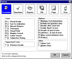 This dialog box allows you to add or remove tests used and amend the running options of a screening.