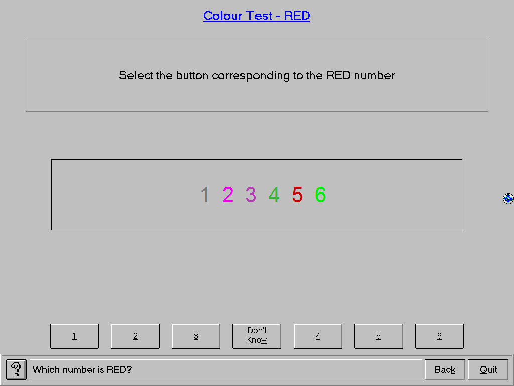 Colour Identification Test - alternate test where you can choose the colours you want to be identified. This test was requested by a customer who ‘just wanted to know that their employees could distinguish between certain colours on their computer screens’.
